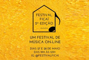 Música autoral, show on-line em tempos de pandemia. Nesta quarta, dia 27, e quinta-feira, dia 28 de maio, ocorre a 2ª edição do Festival de música on-line Ficaí. Nos dois dias, o evento acontece das 19h às 23h e as lives serão apresentadas na rede social www.instagram.com/festivalficai. A programação desta edição contará com 12 artistas de vários locais do Brasil: Rívia (SC); Flavio Ferrari (PE); De Um Filho, De Um Cego (PR); Iara Ferreira (SP); Victoria Saavedra (SP); Léo Santos (RS); Kia Sajo (SC); Pedro K (SP); Banda Ali Na Esquina (SP); Di Santo (SP); Iara Germer (SC) e Chico Preto (SC). Nesta edição haverá também um chapéu virtual, como forma de manter os custos básicos do Festival. Para apoiar e fazer uma contribuição basta acessar https://linktr.ee/festivalficai