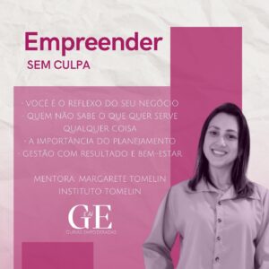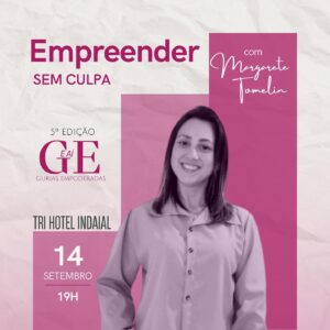 Para esta edição a mentora Margarete Tomelin do Instituto Tomelin ministrará a palestra intitulada “Empreender sem culpa” com o objetivo de trazer uma reflexão sobre as cobranças dos dias atuais, o excesso de comparação e a falta de valorização pessoal, refletindo assim no empreender.