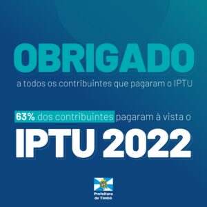 63% dos contribuintes de Timbó pagam à vista o IPTU 2022