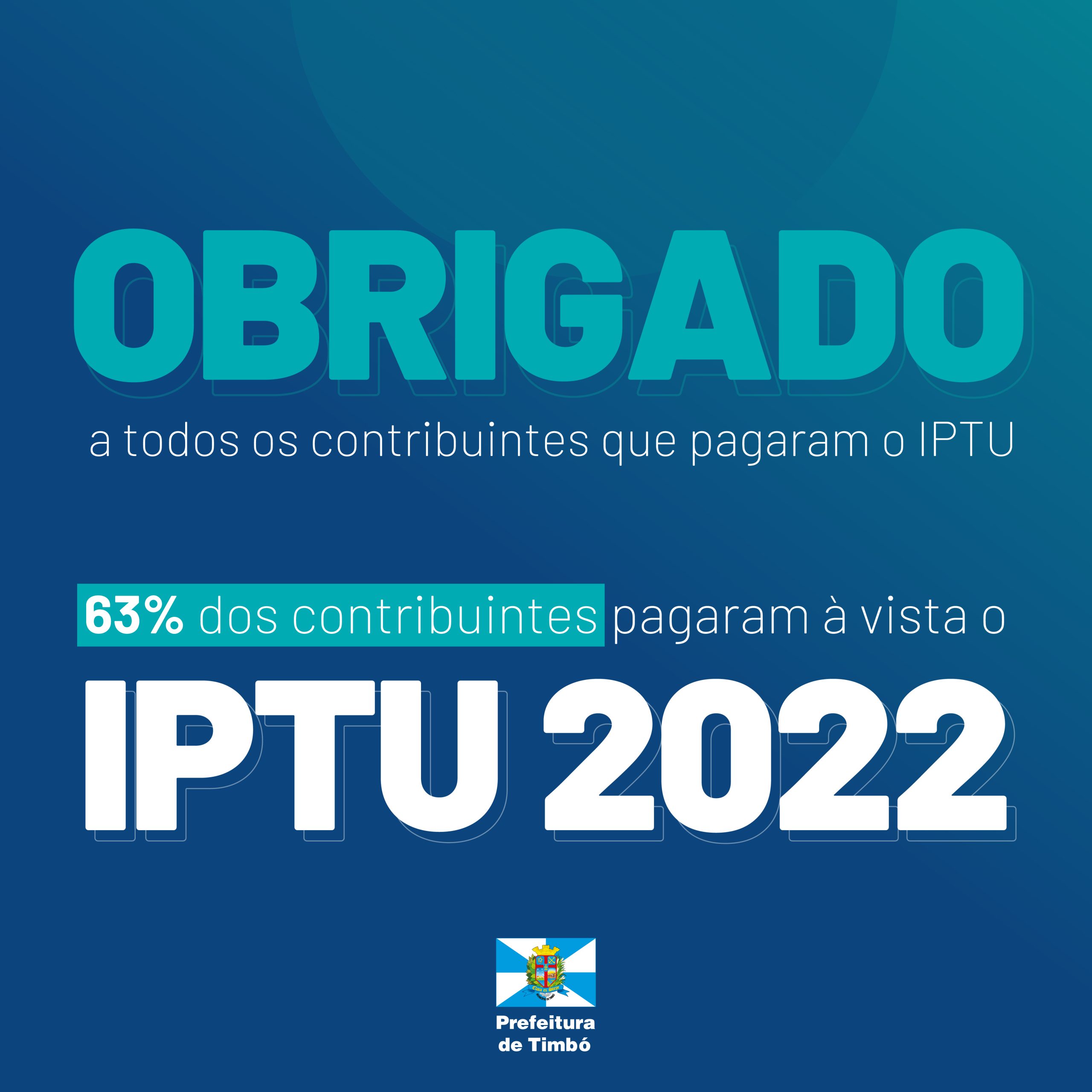 Os timboenses se mostram cada vez mais solidários: 63% dos contribuintes pagaram seu Imposto Predial e Territorial Urbano (IPTU) em cota única e vão ajudar a salvar mais vidas. Isso representa um total de R$7.212.000,00. Como previsto na Campanha, 10% desse valor, cerca de R$ 721.200,00, serão repassados ao Hospital e Maternidade Oase, para obras de ampliação e modernização.
