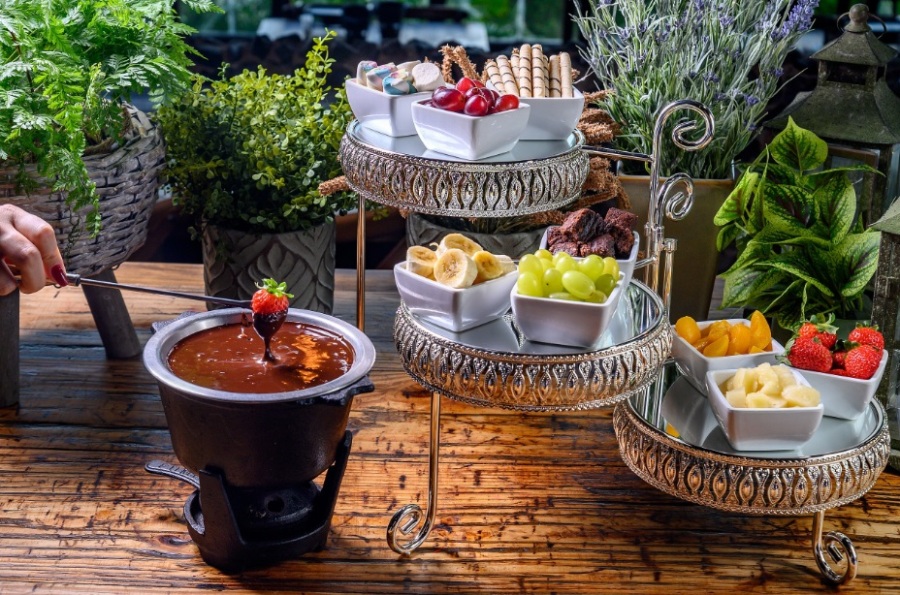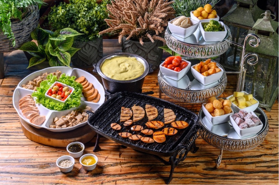 Acompanhado de carnes vegetais de alta qualidade e com texturas apropriadas para a preparação em grelha, pães de fermentação natural, aipim, champignon e outras guarnições, o fondue salgado tem como base o leite de coco e o purê de batata, que garantem a cremosidade do prato. Já o aroma do queijo vem de uma essência e de uma mistura vegetal tradicionalmente utilizada em receitas veganas, além de temperos que proporcionam ainda mais sabor. Para a sobremesa, não pode faltar o fondue doce. Feito com chocolate meio amargo, leite de coco e leite em pó vegetal, o prato é servido com frutas frescas da estação e um delicioso brownie.