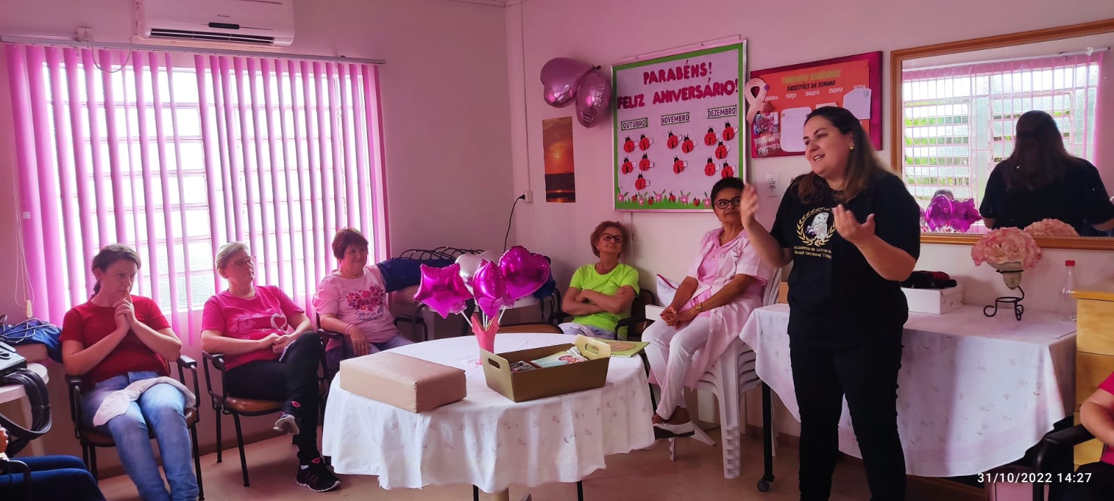 A presidente da Rede Feminina de Timbó, Rosali Zanatta agradeceu a atividade inédita e cultural na sala de massagem mecânica para as mastectomizadas , com a presença também de voluntárias da Rede. “ As mulheres adoraram, enquanto faziam o tratamento. Somos gratas a tudo que traz alegria, leveza e alto astral para estas mulheres que enfrentaram o Câncer. Agradecemos a Academia de Letras de Timbó pelo momento mágico”.