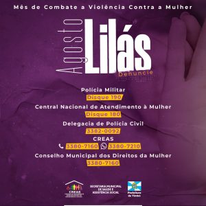 Agosto 12, 2020Considera-se violência contra a mulher qualquer ação que lhe cause lesão, sofrimento físico, sexual, psicológico ou morte. A Secretaria Municipal e Saúde e Assistência Social através do Centro de Referência Especializada em Assistência – CREAS oferta o serviço de apoio, orientação e acompanhamento às famílias e indivíduos em situação de ameaça ou violação de direitos.