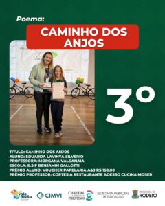 Ontem, 25/09, no Centro Cultural, aconteceu a etapa municipal do programa, reunindo alunos, pais, professores, diretores, equipe da Secretaria de Educação, representantes do CIMVI e demais autoridades. Um momento marcante, que revelou todo o talento dos estudantes através dos concursos de Poema e Desenho.