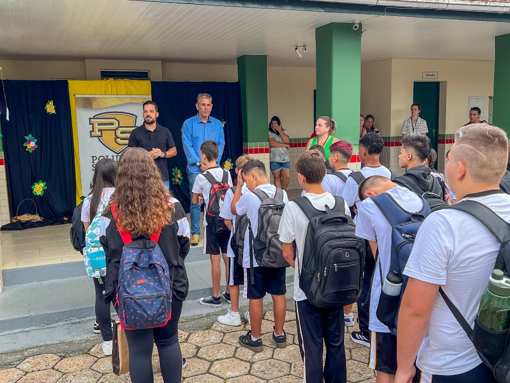Uma das novidades na Educação de Timbó neste ano foi a municipalização da Escola Polidoro Santiago. Desde o dia 01 de janeiro deste ano ela passou a ser denominada Escola Municipal Polidoro Santiago. Por isso, nesta quinta-feira, o prefeito Jorge Krüger e o secretário de Educação, Alfroh Postai, estiveram no local dando as boas-vindas aos estudantes e equipe.