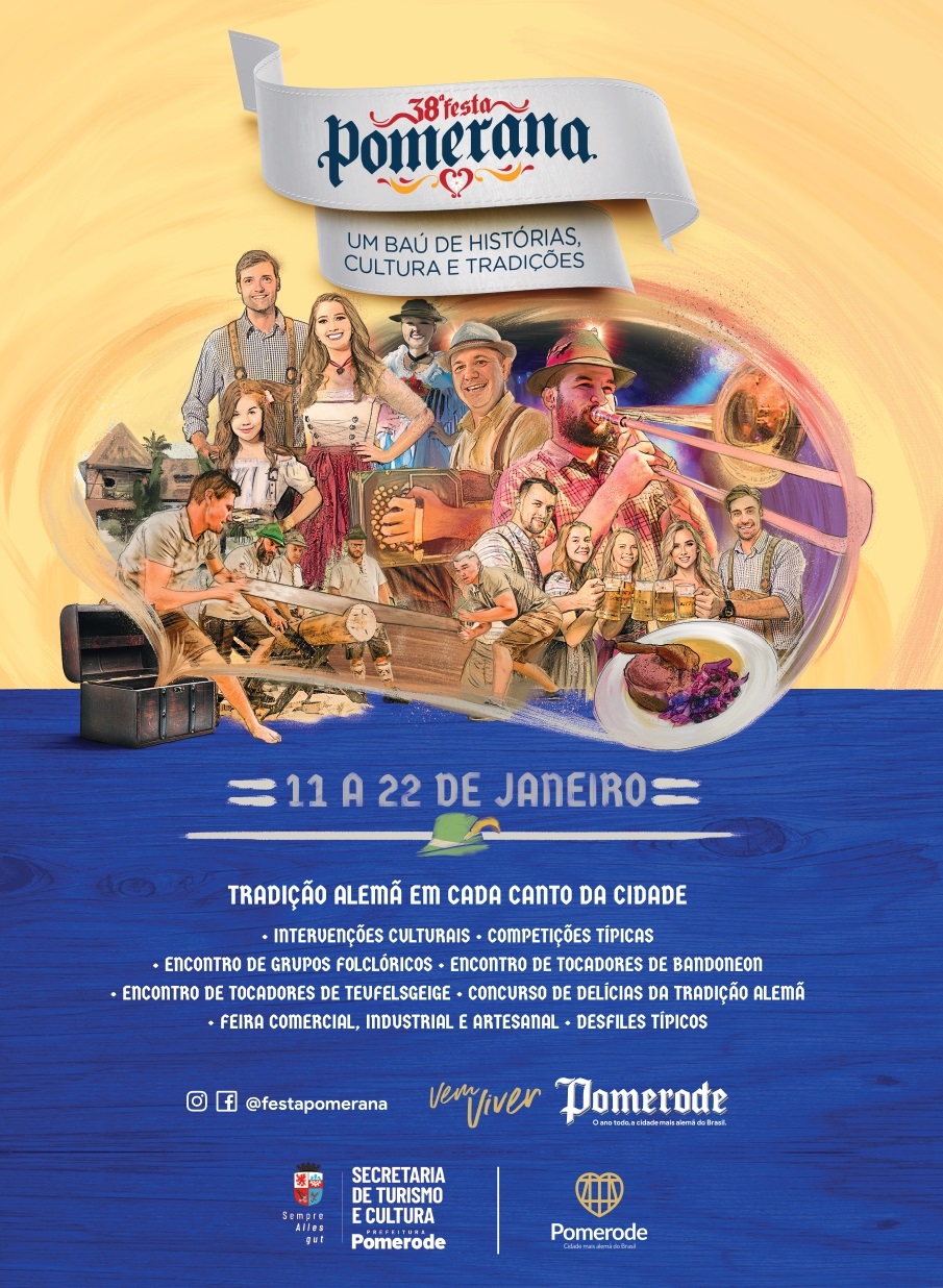 Depois de receber 7.827 visitas somente na primeira noite do evento, a Festa Pomerana segue com uma programação que promete celebrar os 160 anos de imigração na cidade, considerada a mais alemã do Brasil. Com o mote “Um baú de histórias, cultura e tradições”, o primeiro fim de semana da festa traz uma série de atrações que homenageia hábitos e costumes herdados dos imigrantes.