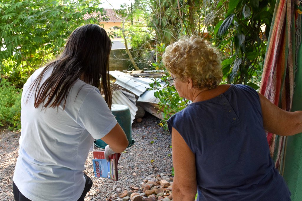 Agentes Comunitários de Saúde, Defesa Civil e Vigilância Sanitária de Ascurra estiveram nas ruas do bairro Estação nesta quarta-feira (13/04), realizando um mutirão de varredura contra criadouros do mosquito aedes aegypti.