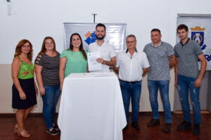 O ato aconteceu durante a cerimônia de lançamento do programa Ascurra de Oportunidades para 2022, que também será beneficiado com a estrutura. Assinaram o documento o prefeito de Ascurra, Arão Josino, e a Diretora de Cultura, Scheila Prade, já que o local receberá as oficinas ofertadas pela Casa da Cultura.