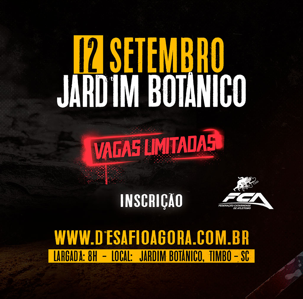 As inscrições já estão abertas para a 2ª Etapa do Cross Country de Timbó, que ocorre no dia 12 de setembro, no Jardim Botânico de Timbó As inscrições são limitadas e podem ser feitas até dia 9 de setembro.