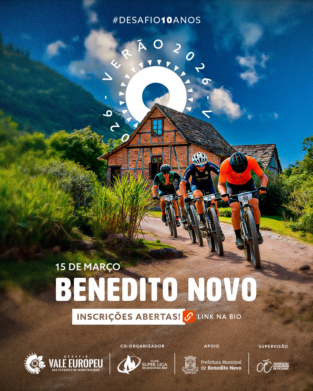 O Desafio Vale Europeu das Estações inicia oficialmente a temporada 2026 no dia 15 de março, em Benedito Novo (SC), com a realização da Etapa Verão, que também marca a comemoração de 10 anos de história de um dos eventos mais tradicionais do mountain bike brasileiro.