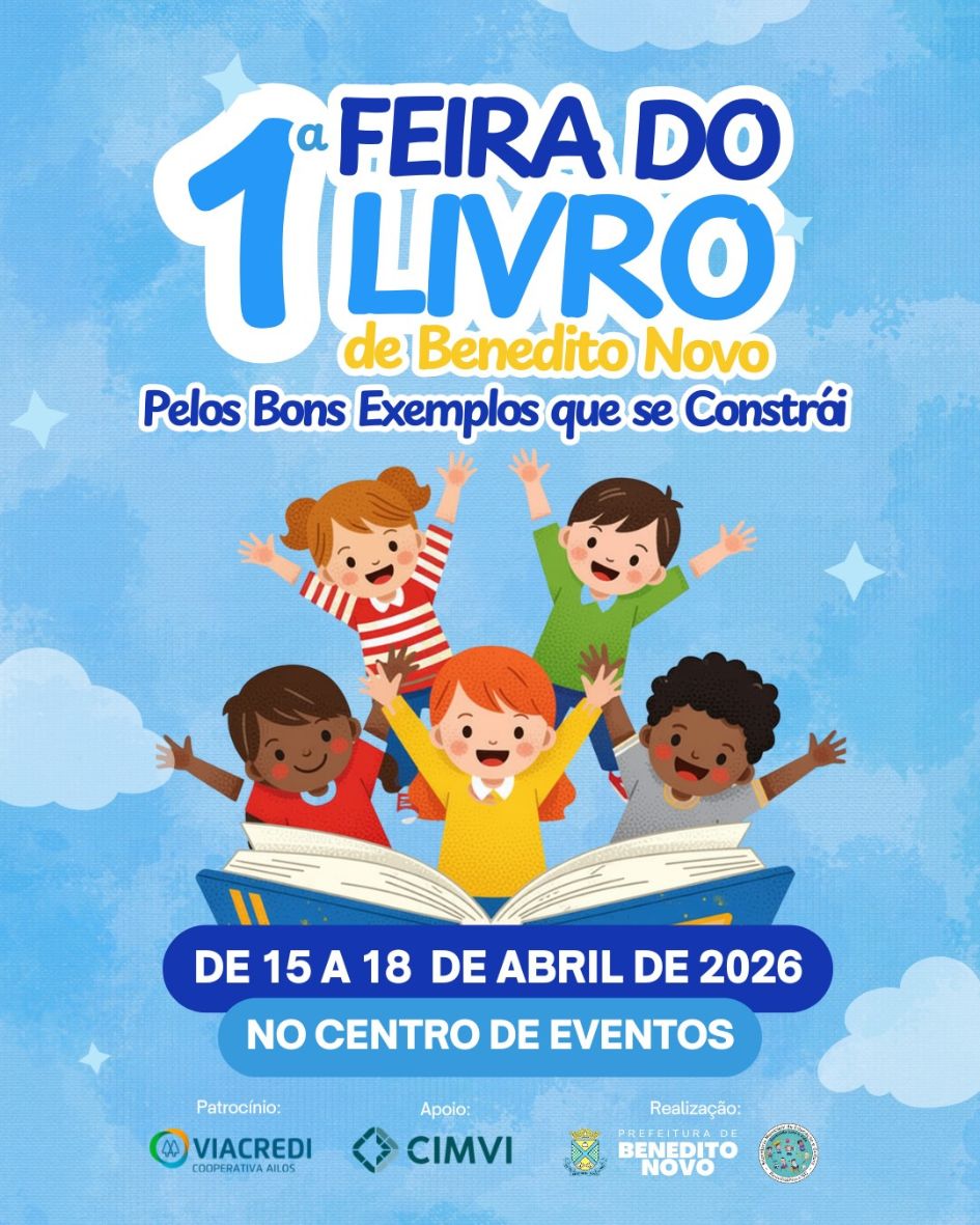 Benedito Novo se prepara para viver um momento histórico na área cultural. Entre os dias 15 e 18 de abril de 2026, o município promove a sua 1ª Feira do Livro, reunindo literatura, educação e entretenimento em uma programação voltada para todas as idades.