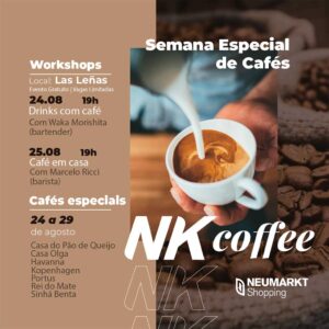 Uma das bebidas mais consumidas no mundo e paixão nacional, o café ganha destaque na próxima semana no Neumarkt Shopping. De 24 a 29 de agosto, os clientes poderão saborear preparações deliciosas com a bebida em sete cafeterias e confeitarias do shopping. Para quem quiser saber mais sobre cafés especiais e aprender a preparar drinques com café serão promovidos workshops gratuitos nos dias 24 e 25, em parceria com o Soul Cafés & Companhias.