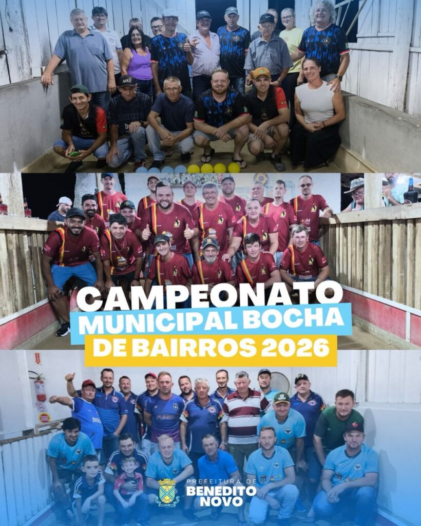 O último final de semana marcou o início de mais uma edição do Campeonato de Bocha Entre Bairros de Benedito Novo, competição tradicional que reúne equipes representando diversas comunidades do município. Popularmente conhecido como Bocha Bairros, o campeonato é um dos eventos esportivos mais aguardados do calendário local.