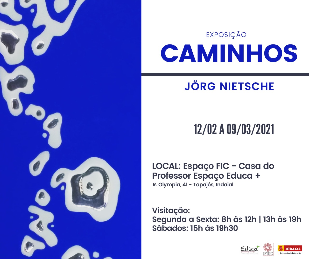 Em parceria com a Secretaria de Educação, a Fundação Indaialense de Cultura coordena o Espaço FIC na Casa do Professor. A comunidade é convidada a prestigiar a partir desta sexta, 12 de fevereiro, a primeira exposição do ano, intitulada “Caminhos”, do artista da cidade, Jörg Nietsche.