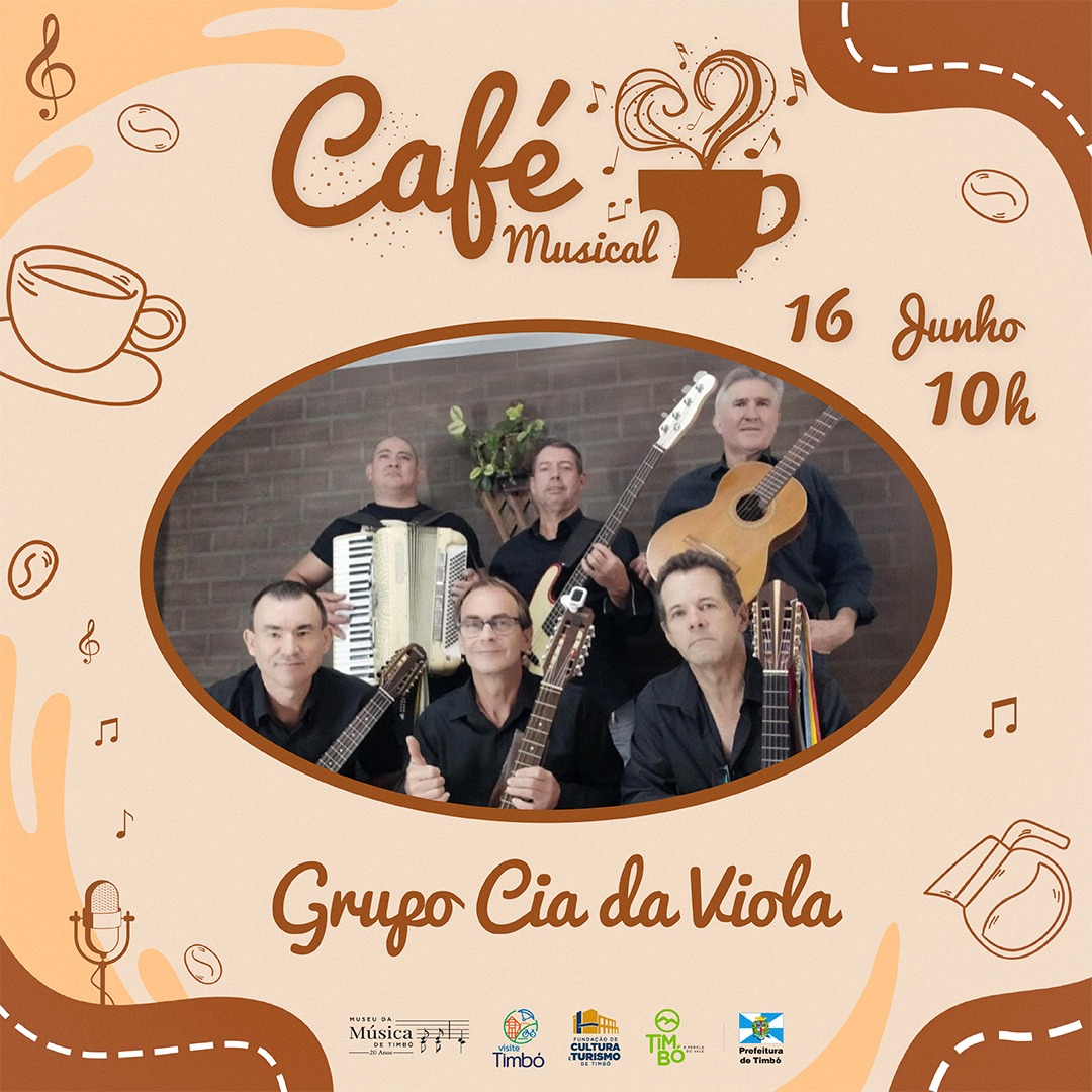 Neste domingo, dia 16 de junho, acontece mais uma edição do Café Musical, que recebe o Grupo Cia da Viola.