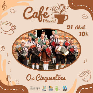 No domingo, dia 21 de abril, acontece mais uma edição do Café Musical, que recebe o Grupo Folclórico Os Cinquentões.