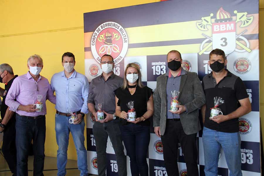 Os Bombeiros foram agraciados com uma medalha em agradecimento pela importante colaboração ao CBMSC.