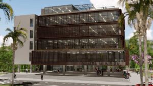 O Estudo Preliminar de 2019 projetava um edifício de 7.141 m², distribuídos em cinco pavimentos e subsolo, com: