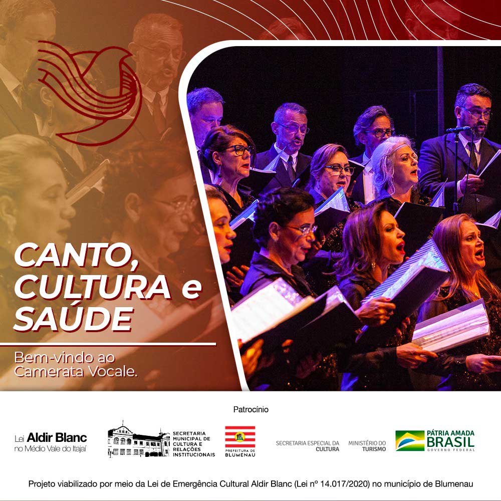 O projeto Viva a Voz, da Associação Musical Camerata Vocale, é viabilizado por meio da Lei de Emergência Cultural Aldir Blanc (Lei nº 14.017/2020), edital 003/2020, no município de Blumenau.