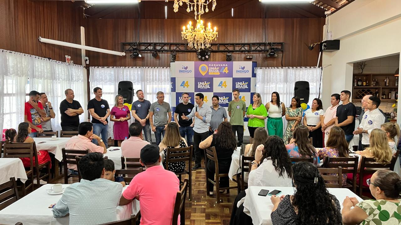 No sábado (16), a Caravana do União Brasil esteve reunida em Timbó, na Associação Atlética do Banco do Brasil, para um café com lideranças políticas, contando com a presença do Deputado Federal e presidente do Partido Fábio Schiochet, vice-presidente do partido e ex-Prefeito de Florianópolis Gean Loureiro e o Deputado Estadual Marcos da Rosa.