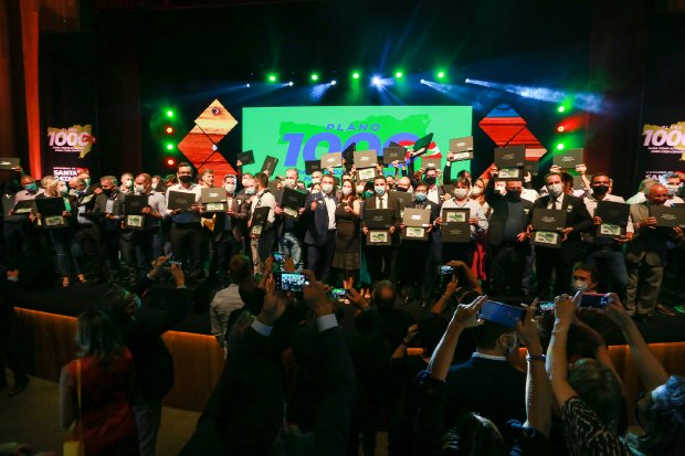 O evento de lançamento do Plano 1000, no Teatro do CIC, em Florianópolis, entra para a história como o início deste que é o maior projeto municipalista para Santa Catarina. Na primeira etapa, serão contempladas as 70 maiores cidades, mas o programa contemplará todos os municípios. A base de cálculo do valor que cada prefeitura terá direito a receber considera R$ 1 mil por habitante, o que não é, necessariamente, um limite para que os bons projetos sejam realizados.