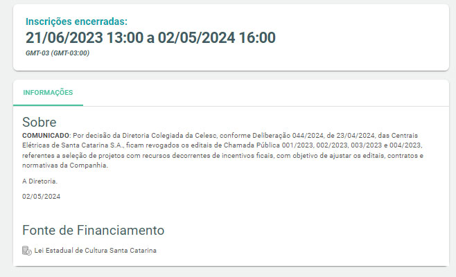 Os quatros editais suspensos pela Celesc foram lançados em 2023. São eles: