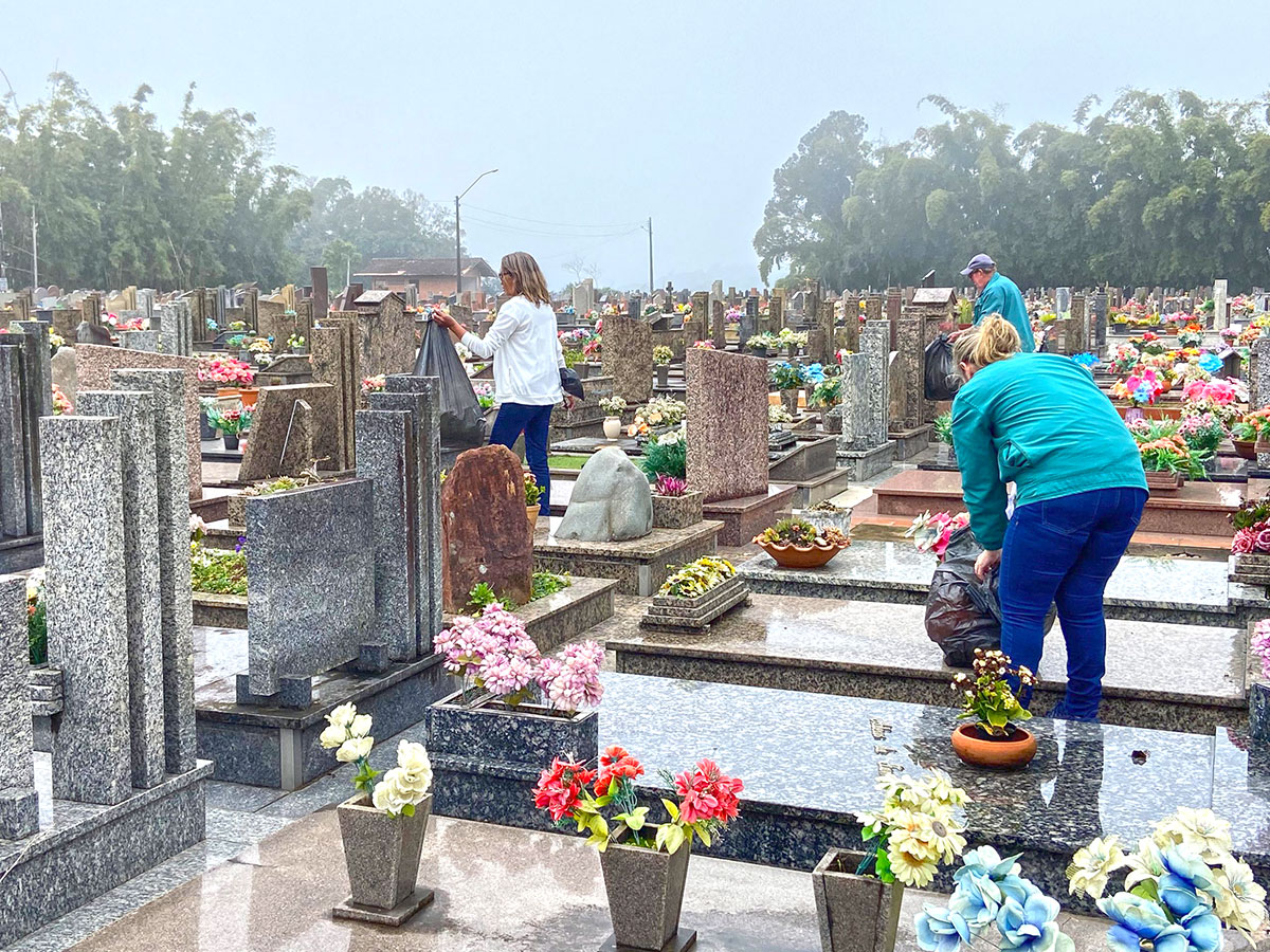 É preciso atenção com as embalagens que serão levadas aos cemitérios, por causa do acúmulo de água. A Vigilância Sanitária de Timbó reitera que os vasos e embalagens de plástico de arranjos de flores devem ser furadas.