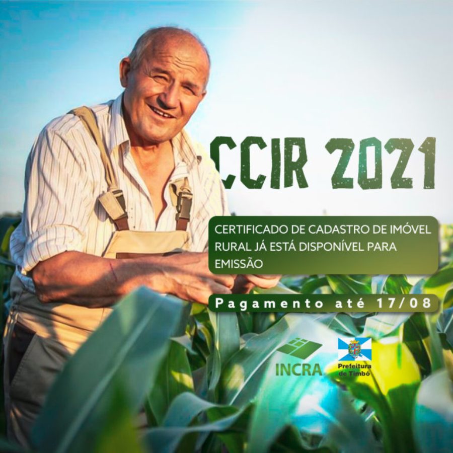 O Departamento de Agricultura informa que o Certificado de Cadastro de Imóvel Rural (CCIR) 2021 já está disponível para emissão. O calendário do CCRI 2021 foi antecipado em relação ao ano passado.