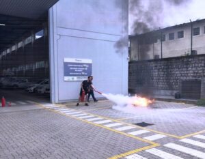 “O exercício teve como objetivo promover a capacitação de brigadistas com informações teóricas e práticas, como técnicas de abandono de área em situação de perigo, como manusear um extintor e noções de primeiros socorros. Tudo isso, para que estes possam atuar em caso de ocorrência real, como no combate a princípio de incêndio e possam se tornar os multiplicadores dos ensinamentos para suas equipes”, pontua Marcelo Oliveira, gerente do Departamento de Meio Ambiente, Saúde e Segurança.