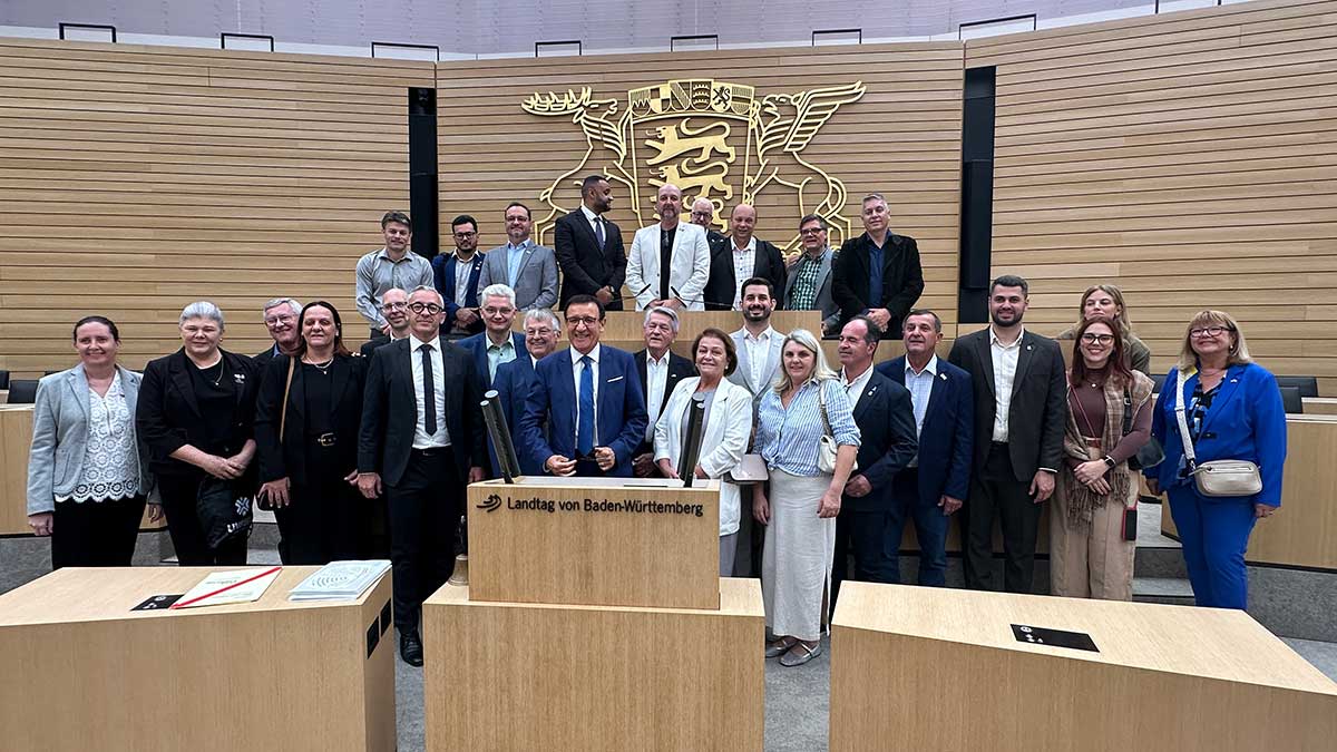 A programação iniciou com uma visita ao Parlamento Estadual de Baden-Württemberg, a convite do deputado estadual Ulli Hockenberger. Na ocasião, o presidente da Amve e prefeito de Apiúna, Marcelo Doutel da Silva, e os prefeitos André Vechi (Brusque) e Valmir Zirke (Guabiruba) foram recepcionados pelo vice-presidente do Parlamento, Wolfgang Reinhart. Com ele, dialogaram sobre temas estratégicos como cooperação regional, capacitação profissional e possibilidades de parcerias entre empresas catarinenses e alemãs.
