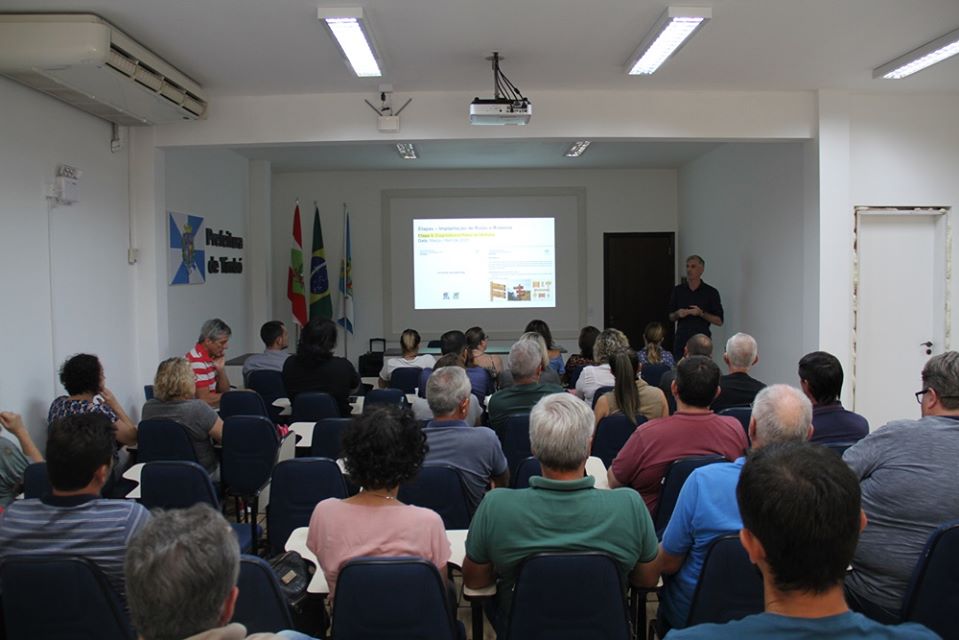 Casa cheia com pessoas interessadas no desenvolvimento do turismo de Timbó para participar do 1º Encontro de Implantação de Rotas e Roteiros Turísticos na cidade, realizado na tarde desta quinta-feira, 27, no Auditório da Prefeitura de Timbó, promovido pela Fundação de Cultura e Turismo em parceria com o Sebrae. Esta atividade está dentro do programa Cidade Empreendedora Ciclo II e foi uma das escolhas da gestão do turismo municipal com o objetivo de incrementar os potenciais turísticos de nosso município.