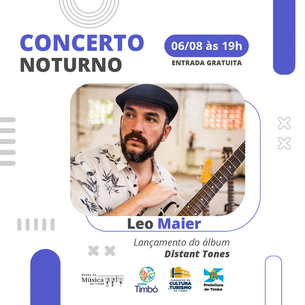 No domingo, dia 06 de Agosto, o Museu da Música recebe Leo Maier, apresentando as músicas do álbum Distant Tones, com os músicos convidados Victor Grava e Fernando Santos, para mais uma edição do Concerto Noturno.