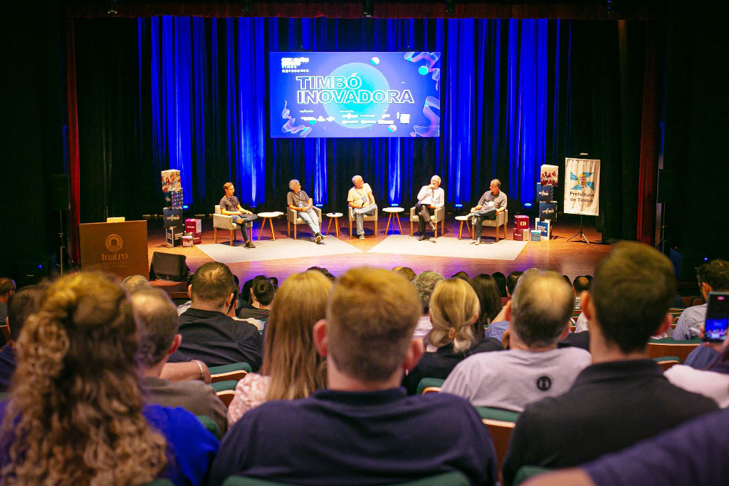 20 de setembro de 2023. Esta data ficará marcada na memória da cidade de Timbó. O evento “Timbó Inovadora” reuniu quase 300 pessoas no Centro Integrado de Cultura (CIC) Ingo Germer, com a presença singular de um time de palestrantes que representa a história viva da inovação e do empreendedorismo do município. Estavam no palco principal compartilhando suas experiências memoráveis, o secretário de Educação de Timbó, Alfroh Postai; o co-fundador e CEO da Atar, Orlando Purim Junior; o presidente do Conselho do Grupo Mueller, John Muller e o presidente do Conselho de Administração da Christal, Wolfgang Rudolph.