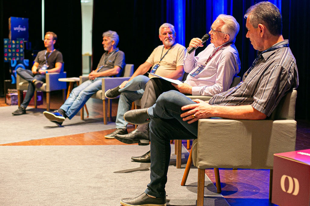 Os convidados recontaram a história de inovação e o que os inspirou para criar e continuar inovando, em uma troca de conhecimento maravilhosa. Tudo isso, complementando com a exposição de máquinas, fotos e artigos que reviveram o passado, as conquistas e as transformações desta história com o município de Timbó. O bate papo foi conduzido pelo Embaixador de Inovação do Centro de Inovação Blumenau, Reginaldo Schollemberg.