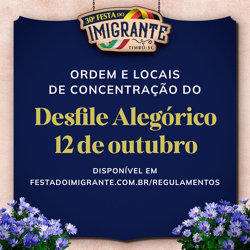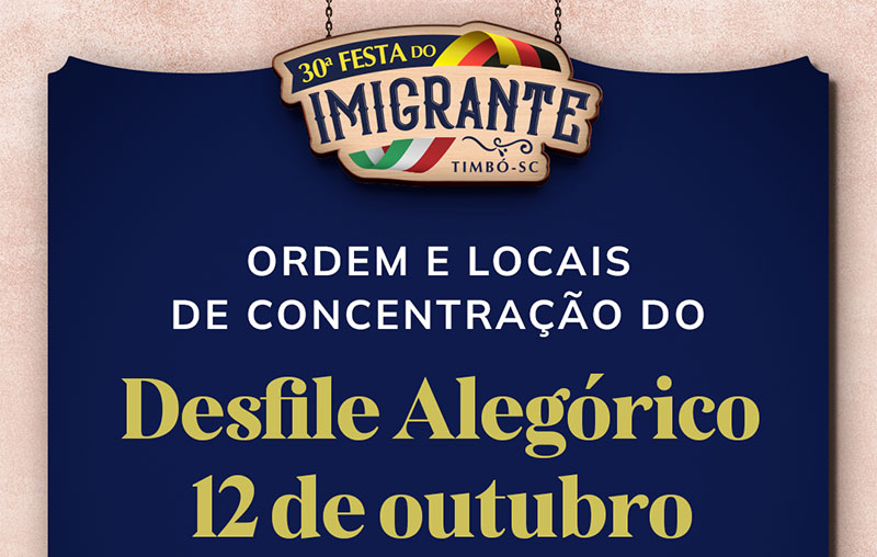 Confira a ordem do Desfile Alegórico do dia 12 de outubro de Timbó