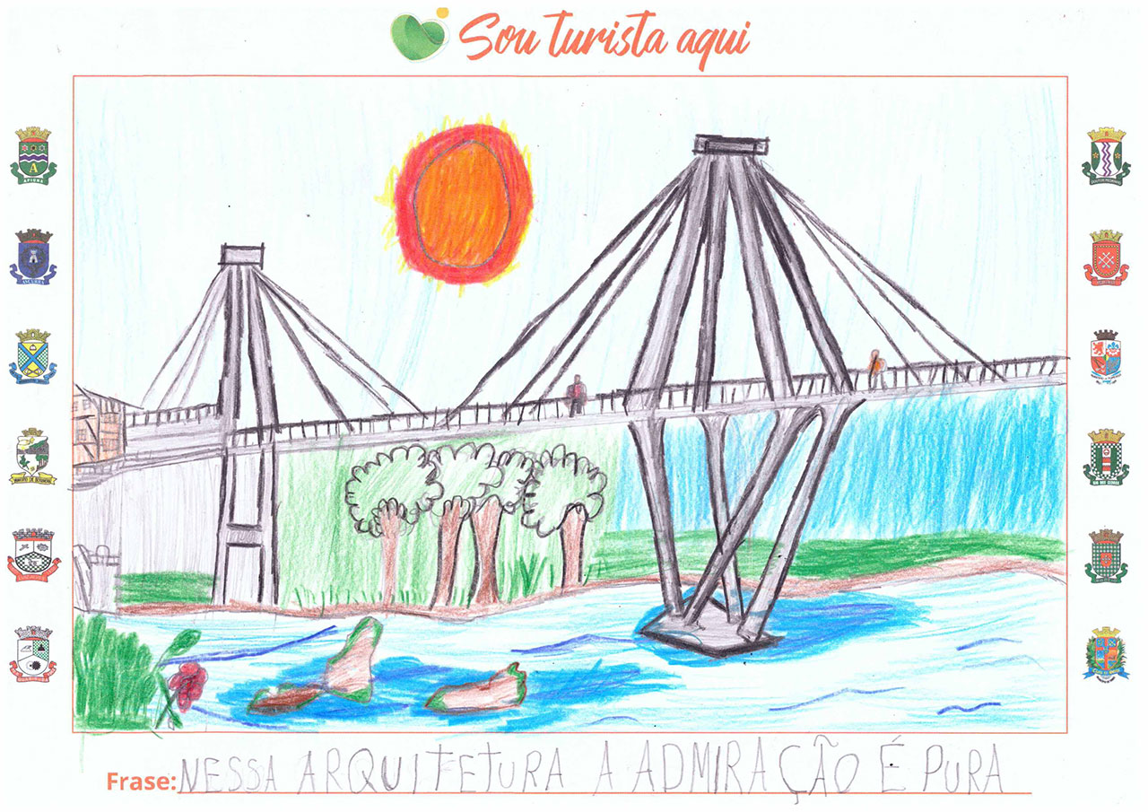 Do estudante Calebe Misael Piske, da E.E.B. Julio Scheidemantel. Com a frase: “Nessa arquitetura a admiração é pura”.