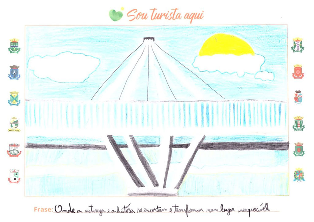 Os estudantes, com a orientação dos professores e baseado nas palestras que receberam no CIMVI, elaboraram um desenho e uma frase com o tema “Sou Turista Aqui”, de algum ponto turístico do município.