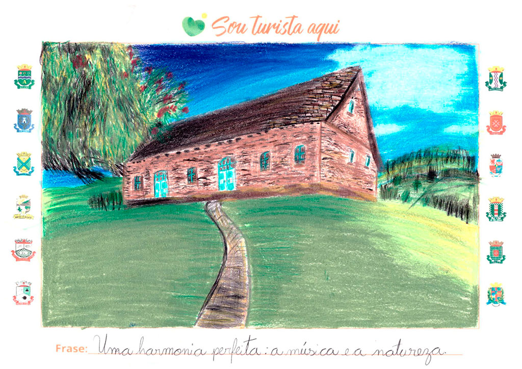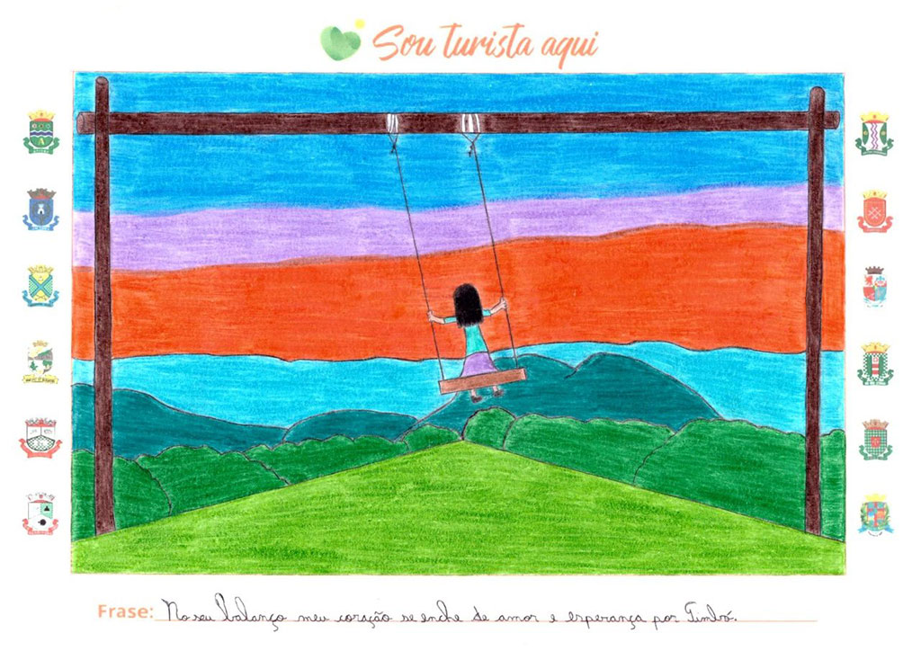 O desenho de Clara traz a ponte do Complexo Turístico Jardim do Imigrante, com a frase “Onde a natureza e a história se encontram e transformam num lugar inesquecível”. O desenho de Matheus mostra o balanço do Parque Morro Azul, com a frase “No seu balanço meu coração se enche de amor e esperança por Timbó”.