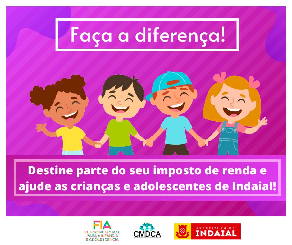 Dessa forma, destine parte do seu imposto de renda para o FIA de Indaial e contribua para o desenvolvimento das crianças e adolescentes.