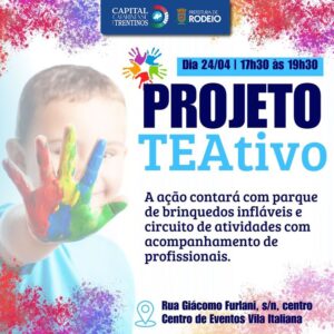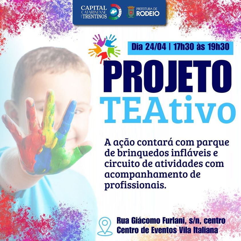 Nesta quarta-feira, 24 de abril, das 17h30 às 19h30, no Centro de Eventos Vila Italiana, será realizado o Cerimonial de Inauguração oficial do projeto TEAtivo na cidade de Rodeio.