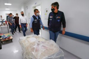 Acompanhado do secretário da Saúde, André Motta Ribeiro, o chefe da Casa Civil, Eron Giordani, e do superintendente do Ministério da Saúde em Santa Catarina, Rogério Ribeiro, o chefe do Executivo estadual participou de reunião no Hospital Regional do Oeste e visitou o espaço onde serão instalados os novos leitos. Em seguida, em encontro com alguns prefeitos da região e secretários municipais de saúde, Carlos Moisés formalizou a instalação do Centro Integrado de Operações, em Chapecó, para alinhar as ações e estratégias de enfrentamento à Covid-19 no Oeste. O grupo de trabalho ficará sediado no Centro Integrado de Gestão de Riscos e Desastres (Cigerd), Regional Chapecó.