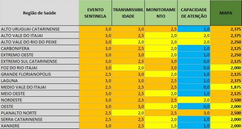 Coronavírus em SC: Nova matriz de risco mostra melhora em cinco regiões catarinenses