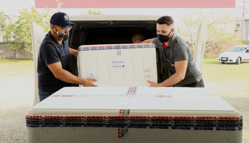 Ainda na manhã desta segunda-feira, chegou em Santa Catarina um lote com 63.180 doses da Pfizer e outro com 56.100 doses da Coronavac. Mais 131.500 doses da AstraZeneca estão previstas para desembarcar em Florianópolis até o fim do dia.