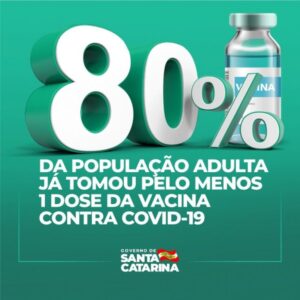 Covid-19: Estado de SC atinge 80% da população adulta vacinada com a primeira dose