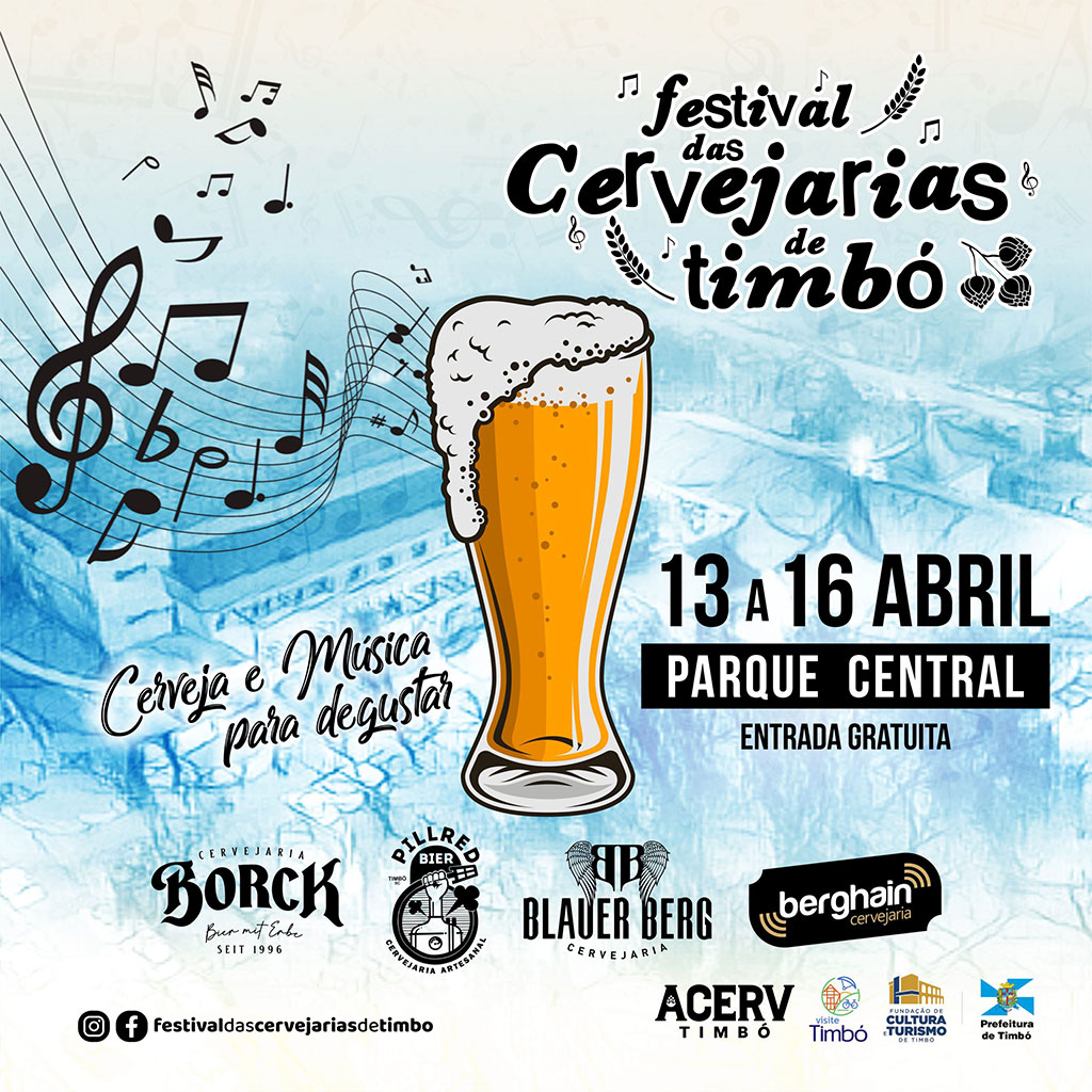 Um dos eventos mais queridos da região está de volta: o Festival das Cervejarias de Timbó acontece entre os dias 13 e 16 de abril, no Parque Central. Muita cerveja e música para degustar.
