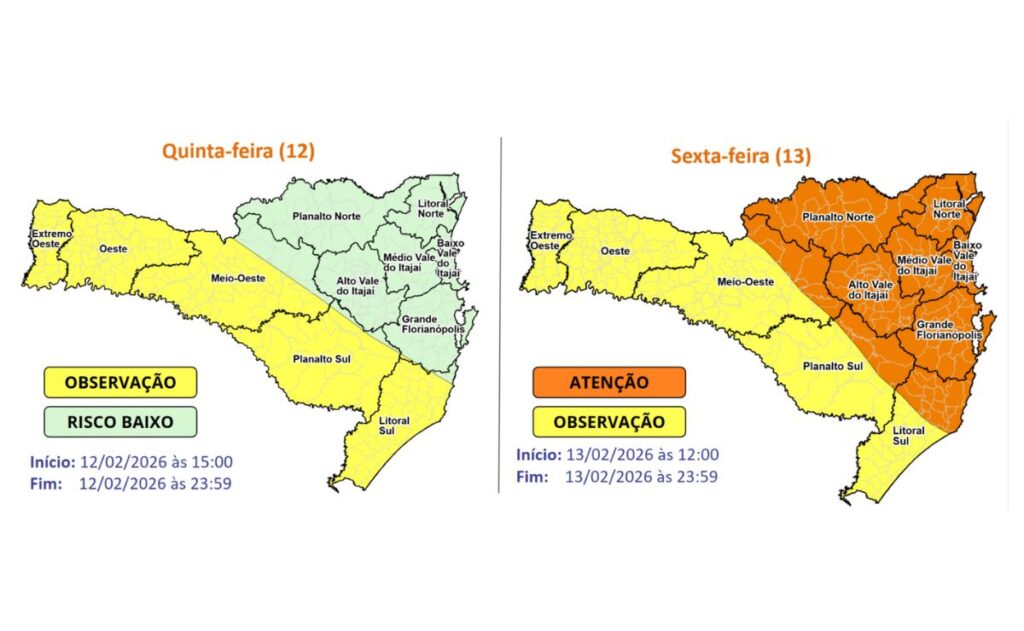 Defesa Civil/SC: Alerta de temporais e chuva intensa (12 e 13/02)