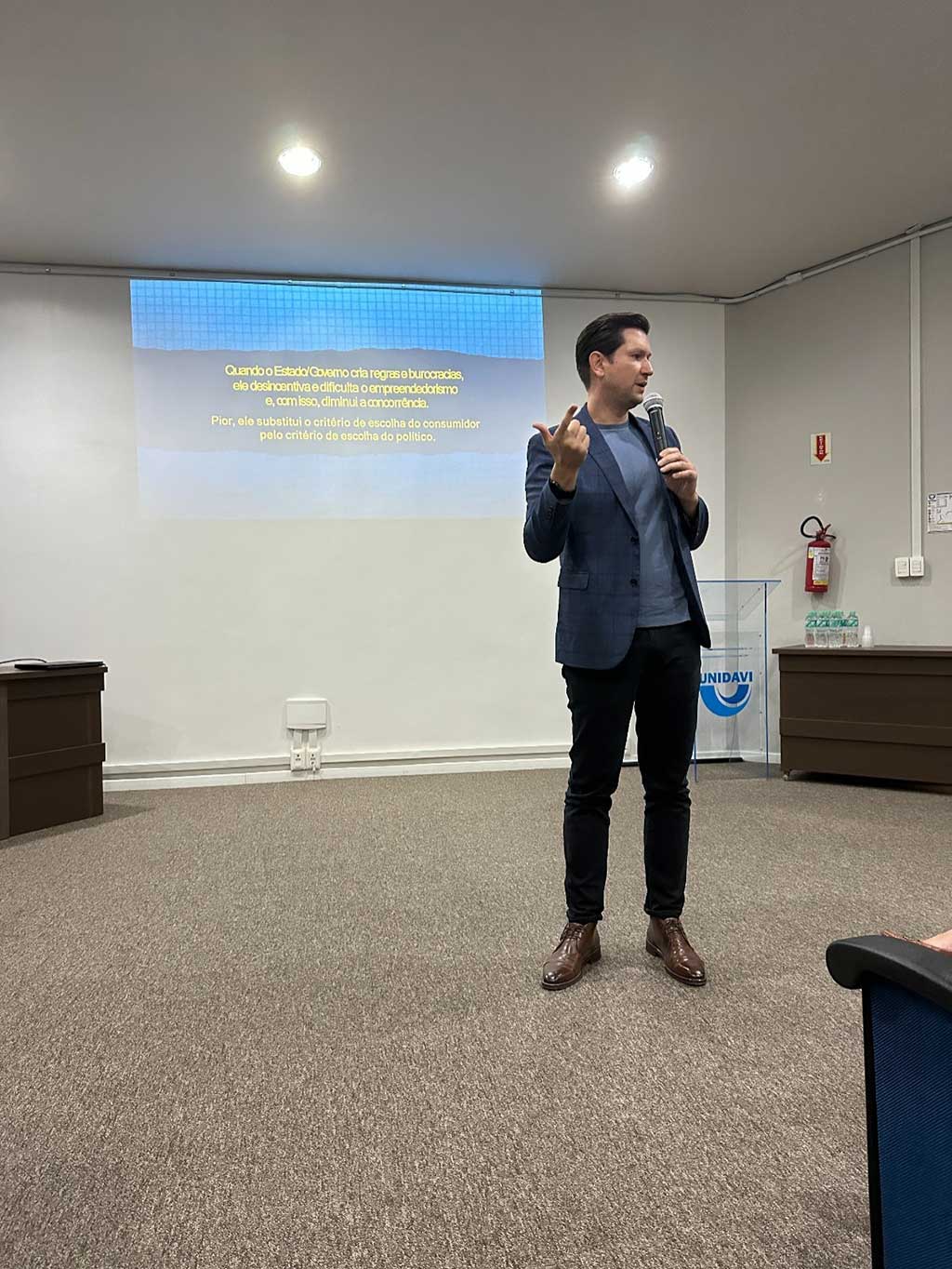 Deputado Gilson Marques palestra para alunos de Direito da Unidavi em Rio do Sul