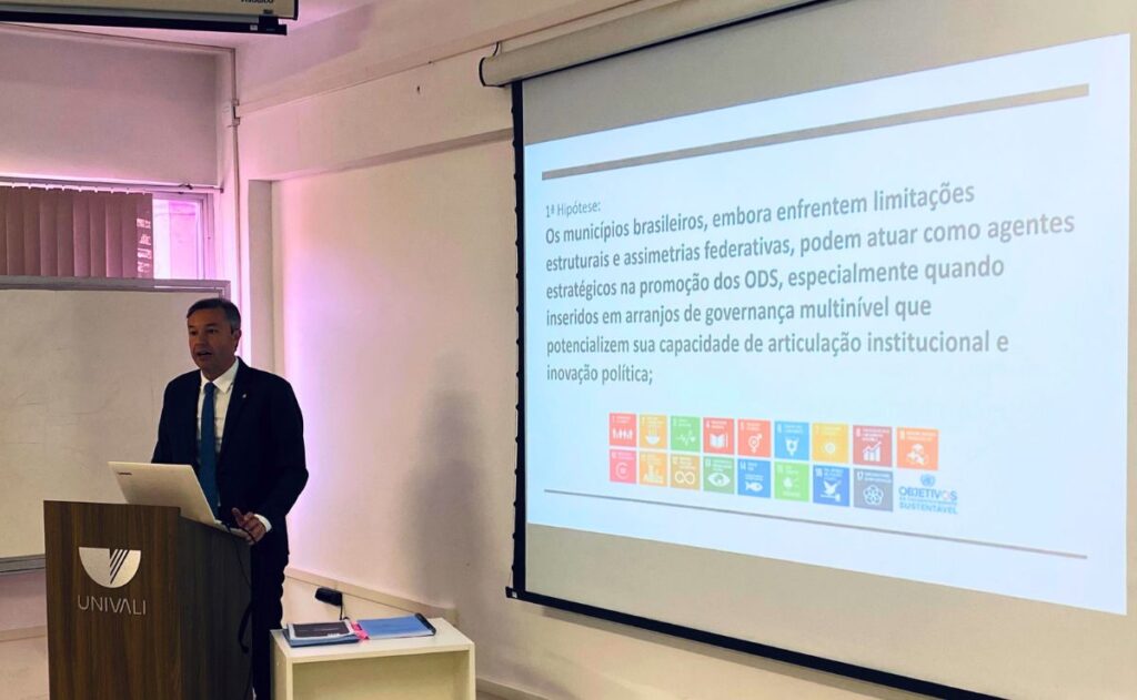 Com o tema “Governança para o Desenvolvimento Sustentável: A Possibilidade de Atuação Transnacional dos Municípios para a Promoção dos ODS Através da Paradiplomacia”, o trabalho analisa o papel crescente das cidades na construção de soluções para desafios que ultrapassam fronteiras, entre eles, migração, crises econômicas, impactos ambientais e outras agendas complexas presentes no debate global.