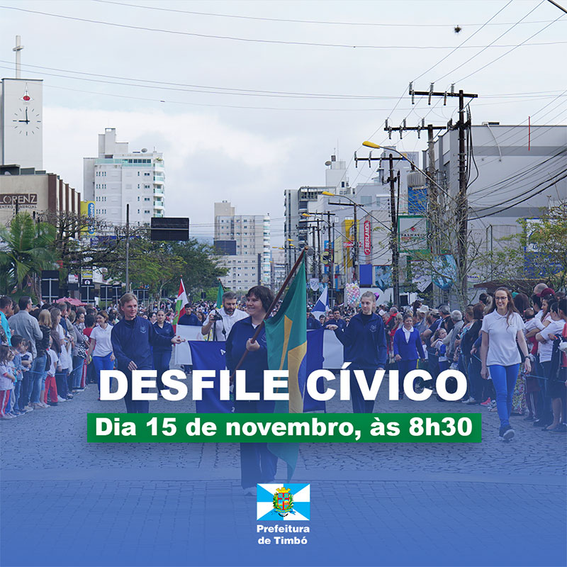 Na próxima terça-feira, dia 15 de novembro, feriado de Proclamação da República, acontece o Desfile Cívico do município. O Desfile começará às 8h30, com o percurso da Avenida Getúlio Vargas, entre o cruzamento das ruas Ruy Barbosa e Manaus, até a Rua Julius Jacobsen (nas imediações do Complexo Turístico Jardim do Imigrante).