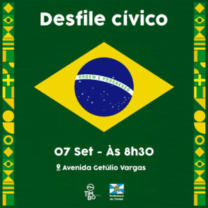 Nesta quinta-feira, dia 07 de setembro, acontece o Desfile Cívico da Independência, a partir das 8h30. O percurso do Desfile será na Avenida Getúlio Vargas, entre o cruzamento das ruas Ruy Barbosa e Manaus, até em frente ao Complexo Turístico Jardim do Imigrante.